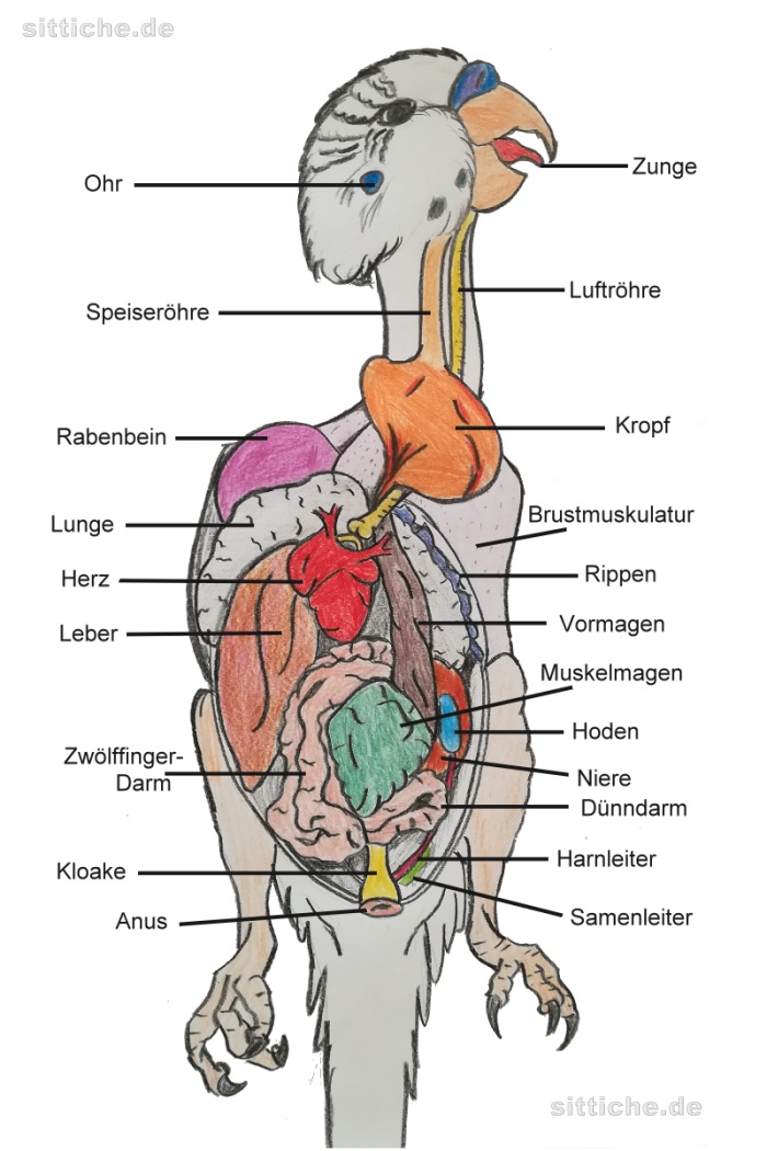 Im zweiten Teil der Artikelserie über die Anatomie des Wellensittichs geht es um das Innenleben - die inneren Organe samt Verdauungssystem.
