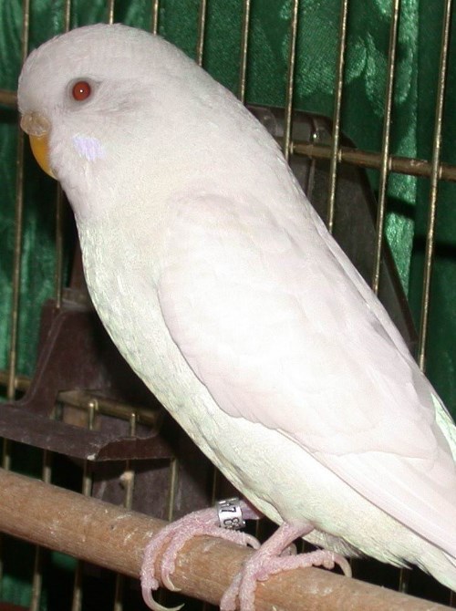 Sie haben die gleichen Merkmale wie Lutinos, nur dass sie rein weiß sind. Ein Albino ist am ganzen Körper Weiß und ist frei von jeglicher Zeichnung. Die Augenfarbe ist Rot mit weißer Iris. Wangenflecken sind Silbrigweiß, Füße und Beine fleischfarben.