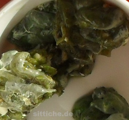 Man beobachtet bei einigen Wellensittich auch, dass sie das normale Körnerfutter ablehnen oder nur lustlos die Körner zermahlen und nicht wirklich fressen, man erkennt das am Körnermehl im Fressnapf.