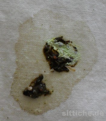Kot eines nierenkranken Wellensittichs