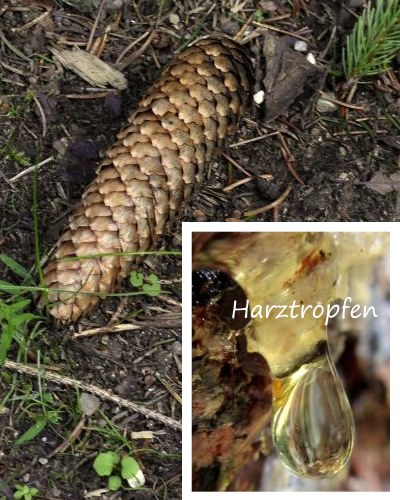 Kiefer und Fichten kennt man als Heilpflanzen, z.B. in Hustenpräparate sind einige Bestandteile enthalten, auch als Einreibemittel findet es Verwendung. Enthalten ätherische Öle und Harze.