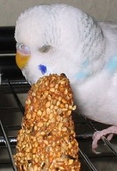 Nun kommen wir zu den Leckereien! Damit das Fressen dem Wellensittich Freude bereitet und er sich das Futter auch erarbeiten muss, kann man ihm auch mal was ganz Besonderes anbieten: Selbstgemachte Knabberstangen und Eibisquit. Diese reicht man dem Vogel aber höchstens ein- oder zweimal die Woche, damit er nicht zu dick wird.