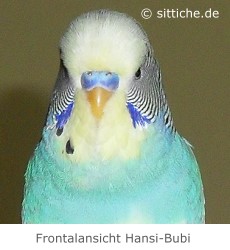 Hansi-Bubis kommen der Wildform der ursprünglichen Wellensittiche am nächsten - sie sind klein und haben einen zierlicheren Knochenbau, vom Charakter her sind sie häufig auch etwas quirliger. Meistens sind sie so zwischen 16 - 19 cm groß. Erkennbar sind sie außerdem an ihren enganliegenden Gefieder und den kreisrunden leicht hervortretenden Augen. Die Federn sind um das Auge angeordnet, weshalb das Auge ebenfalls rund aussieht. Sie haben wenige Kehltupfen, drei auf jeder Seite und kurze Bartfedern.